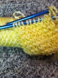 Okay, I don’t usually post scarves in progress, but since SOMEBODY already spoiled the surprise, here is number five. This one should be completed this weekend and west of the Rockies by next.