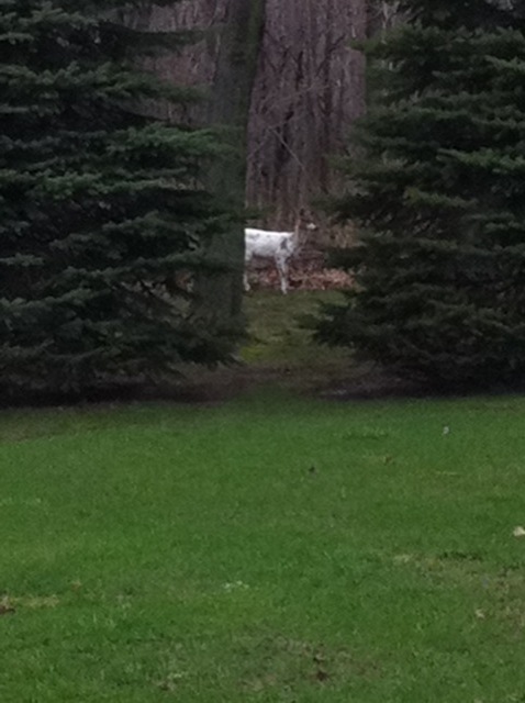 This is an albino deer that lives in the woods outside my office. I call him Moby Deer, but maybe Bambi Dick would be better.