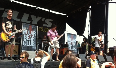 The first band I found was at the Tilly.com stage: Polar Bear Club. They are actually local-ish, from the Rochester/Syracuse area. I would call them sort of punk/alternative in genre. I especially liked Living Saints. I picked up their latest release at their merch tent.
