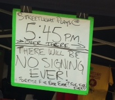This sign on the merch tent doesn’t seem to be in the spirit of Streetlight Manifesto.